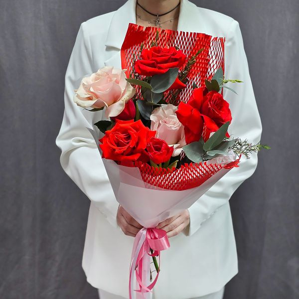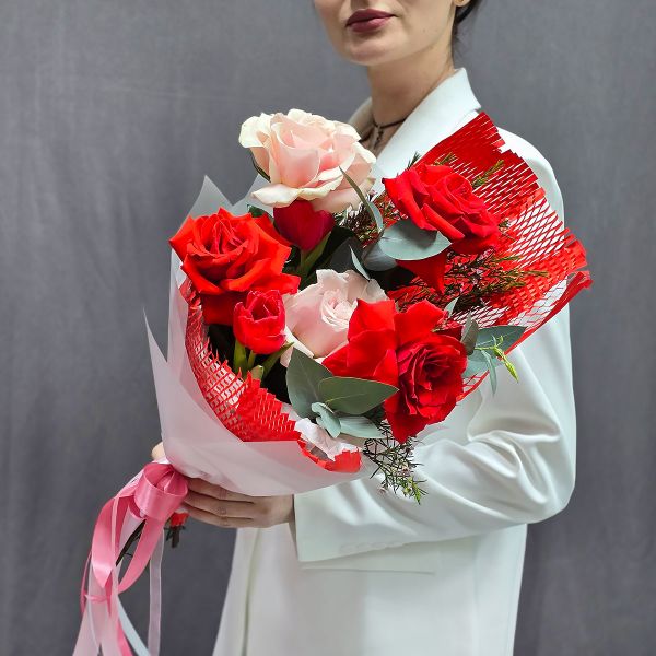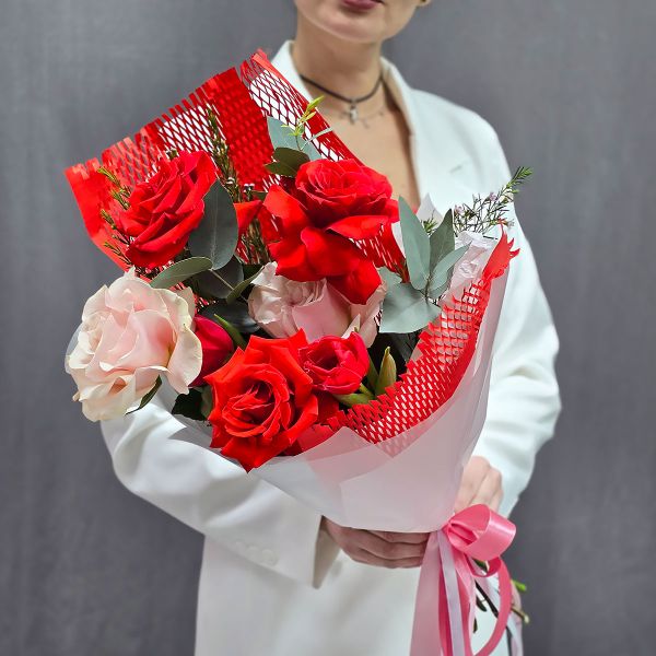 - Букет с алыми французскими розами Заворожила