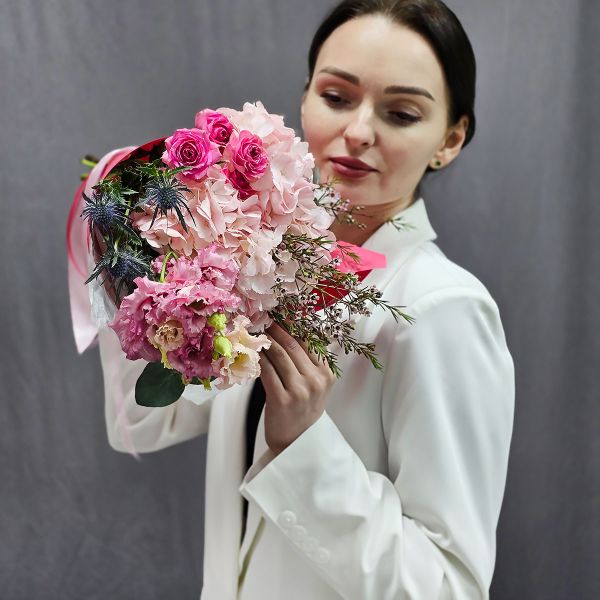 - Букет с гортензией Розовое сияние