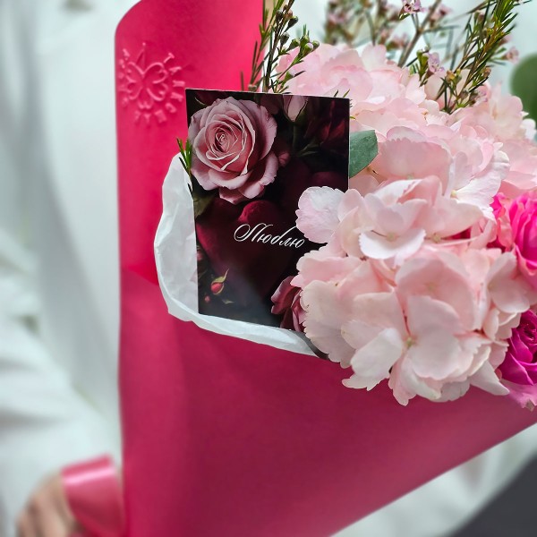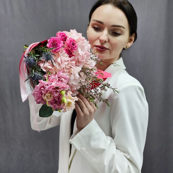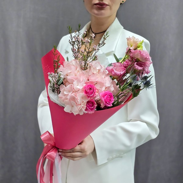 Букет с гортензией Розовое сияние