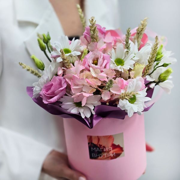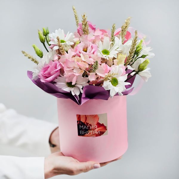 - Цветы розовые в коробке Хорошее настроение