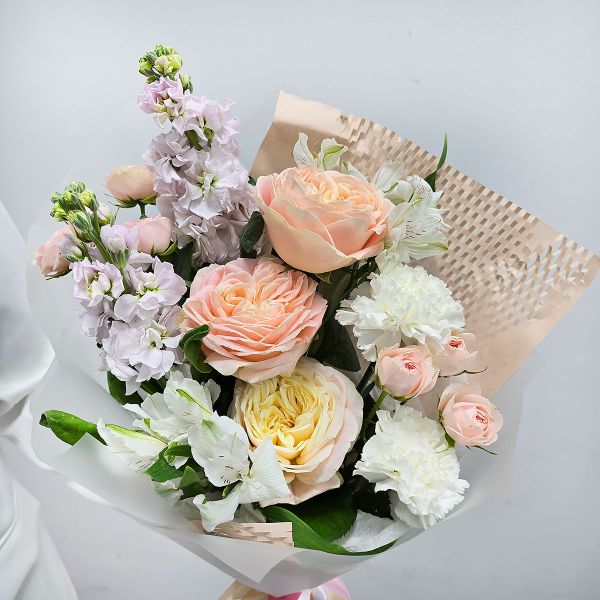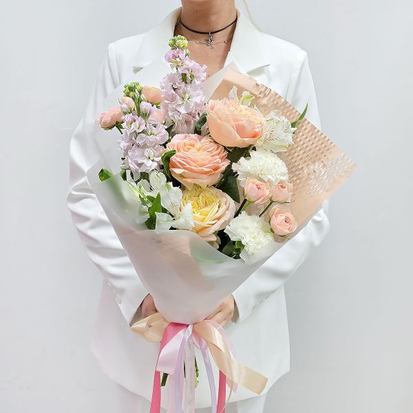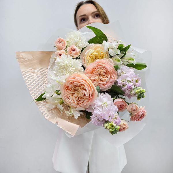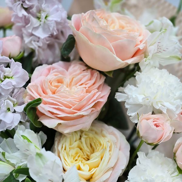 - Нежная история букет кремовый из пионовидных роз