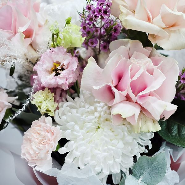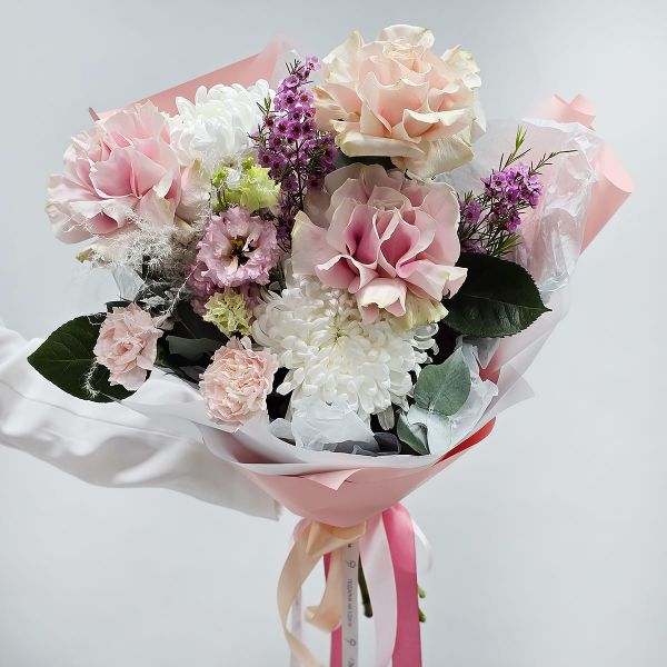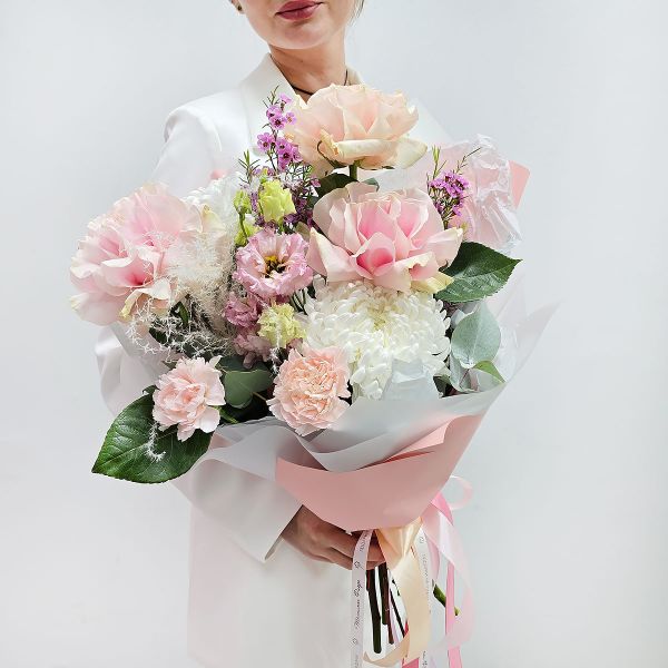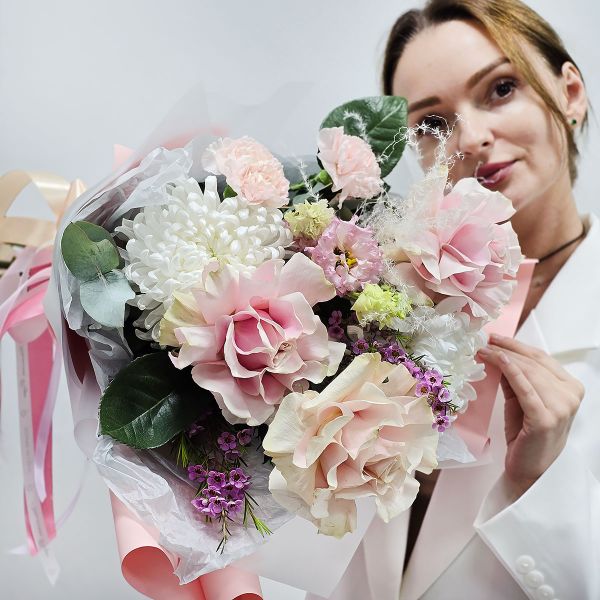 - Поздравляю тебя! Букет из французских роз и хризантем
