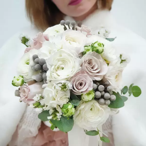 - Букет невесты из пудровых роз и ранункулюсов