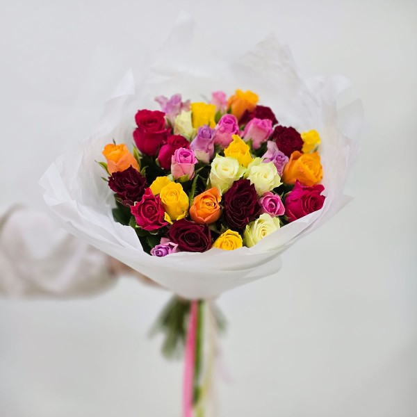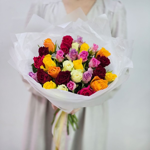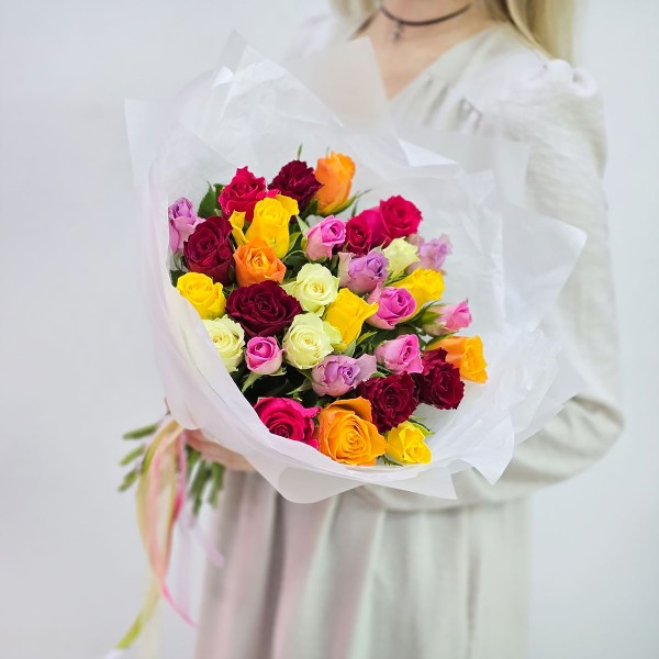 Букет разноцветных роз Кения 25 шт